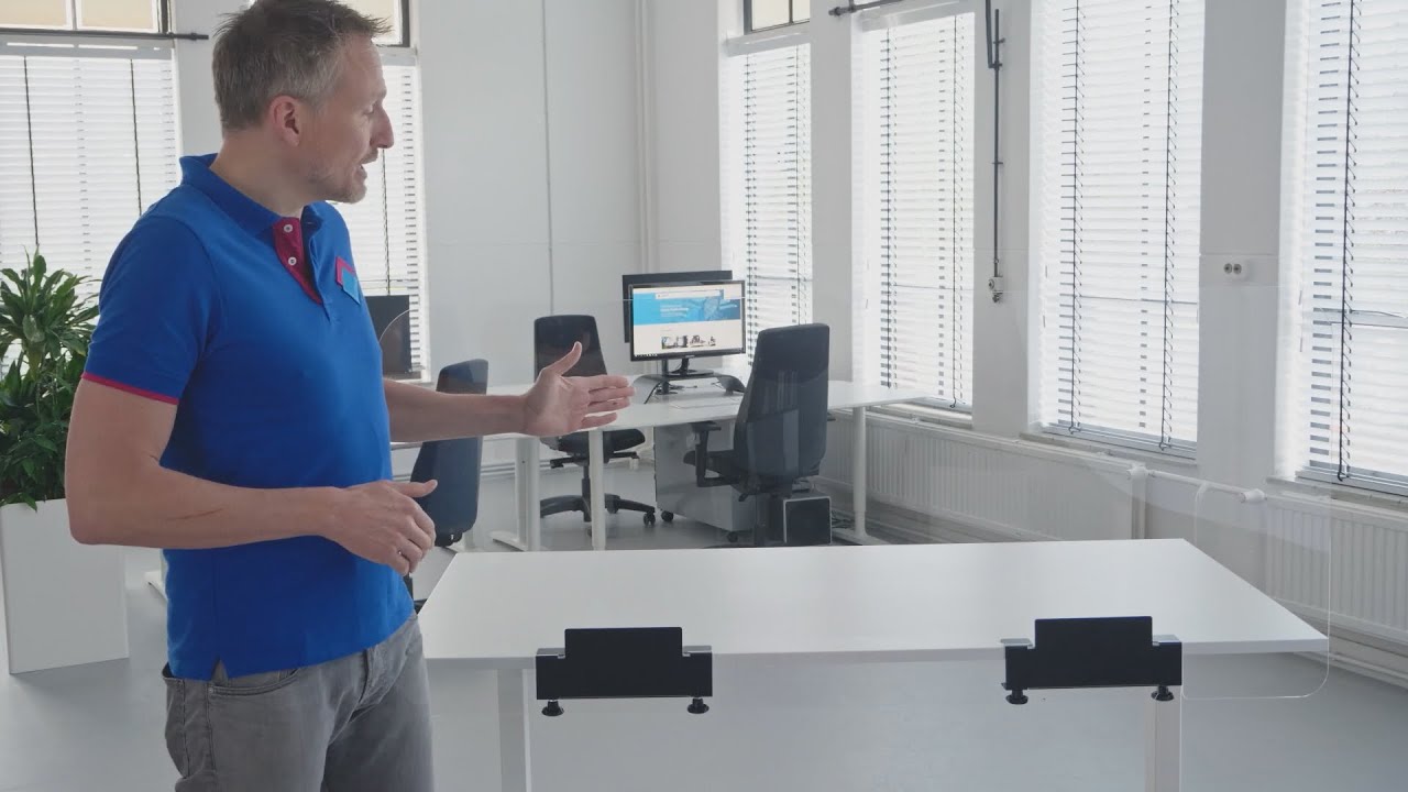 Snel en effectief je kantoor beschermen tegen pandemische ziekteverwekkers? Deze plexiglas bureau-afscheiding is hét antwoord om veilig te kunnen werken. Geschikt om aan de lange zijde van een bureau of tafel te plaatsen. Zo creëer je in een mum van tijd een stevige plexiglas afscheiding tussen 2 tegenover elkaar staande bureaus. De plexiglasplaat bevat 2 handige lippen waardoor je de plaat in één keer in de zwarte klemmen plaatst. Snel, stevig en veilig.