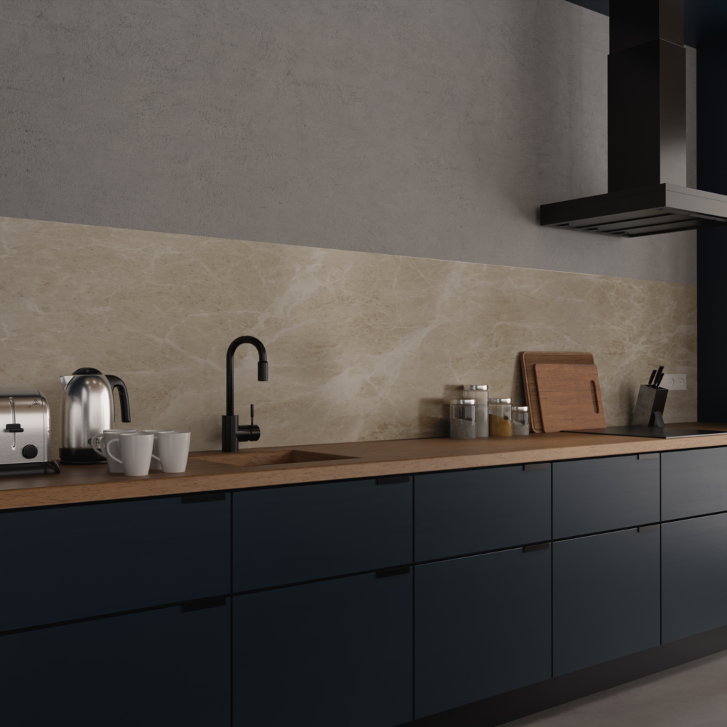Onze wandpanelen in marmer crème mat geven jouw keuken, badkamer of toilet een stijlvolle uitstraling. Dit paneel is gemaakt van Alupanel, een topkeuze als het gaat om duurzaamheid en eenvoudige installatie. Het stevige en lichtgewicht materiaal (een combinatie van dunne aluminium lagen en een kunststof kern) is helemaal waterdicht. Ideaal dus voor vochtige plekken zoals de douche. Met de matte afwerking voeg je een vleugje klasse aan je interieur toe zonder gedoe. En het beste van alles? Je bevestigt het tot wel drie keer sneller dan traditionele tegels.
