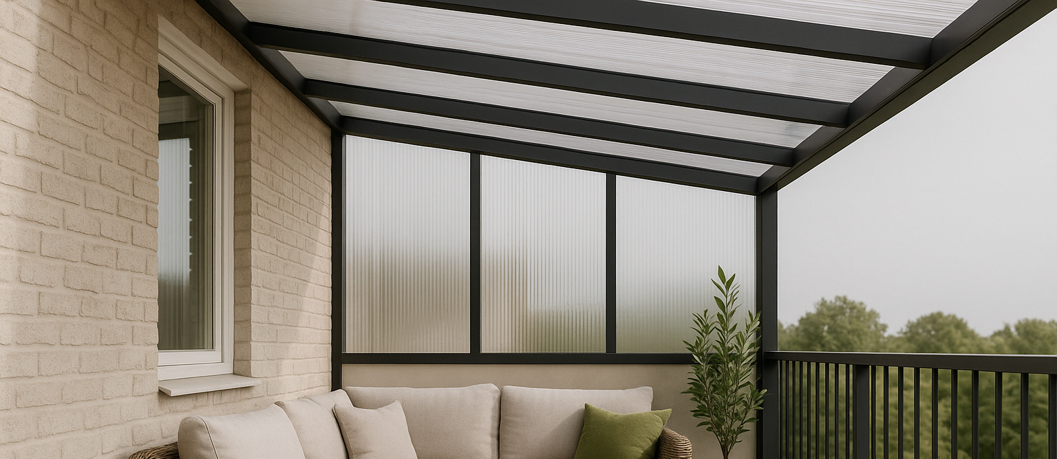 Een balkonoverkapping is een stevige constructie die je boven je balkon plaatst. Hiermee creëer je een beschutte plek waar je droog en uit de wind kunt zitten. Het houdt ook de zon tegen als die te fel is. Bovendien blijven je meubels en balkonaccessoires langer mooi, omdat ze beschermd zijn tegen vocht en schadelijke UV-stralen. Kunststoffen zoals polycarbonaat zijn ideaal voor balkonoverkappingen: sterk, licht in gewicht en goed bestand tegen wisselende weersomstandigheden.